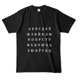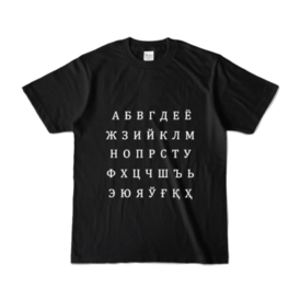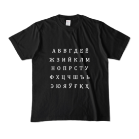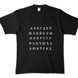 ウズベク語キリル文字アルファベット単色 半袖Tシャツ 黒