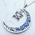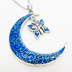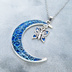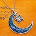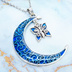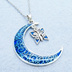 アンティークシルバー ブルームーンネックレス 三日月と蝶のペンダントネックレス レジン 長さ調整可