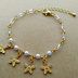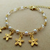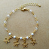 メタルフラワーと小粒パールのチェーンブレスレット(ゴールド)