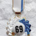 こちら素人によるハンドメイドのロゼットになります。 丁寧に作成しておりますが、多少のバラつき、接着剤跡などございますので、ご了承いただける方のみお願いします。 ラインストーン等ボンドで接着しております。 ロゼット、数字部分は両面テープを使用しておりますので危ないと感じた際には補強をお願いいたします。 裏側のブローチピンをご利用いただくか、ループにボールチェーンを通してご利用ください。(ボールチェーンは付属いたしません) 2枚目以降の画像はサイズ比較用のサンプル画像となります。 ご利用の環境によって色味が異なります。 市販品のような強度はないと思われますのでご理解いただいた上でご購入いただけますと幸いです。