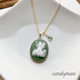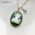 【送料込み】緑のお花の妖精カメオと緑色グリーンアパタイト天然石のネックレス