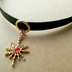 ---------------------------------------------------------------------------------- こちらは【Cozy Christmas Market Online】に出品の作品です。 クリスマスや静かな冬の夜をイメージしたアクセサリーを中心に作りました。 ---------------------------------------------------------------------------------- 小さな宝石のようなポイントのついた、星のきらめきをイメージしたメタルモチーフを中央に配置した合皮のチョーカーです。 中央には丸いバックル飾りも付いています。 ※金属アレルギー、メッキ加工が肌に合わない方は注文をお控えください。 【サイズ等の仕様】 全体長さ アジャスター部分を含まず約34.5cm(アジャスター約4cm)。