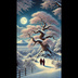 【AI画】月をもめでじ 積もる雪老木の桜日本富士山満月AIアートAIイラストAI生成画像