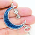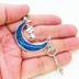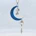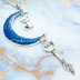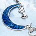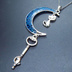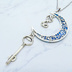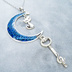 アンティークシルバー ブルームーン マリンブルーの三日月に猫と鍵を吊り下げたネックレス 長さ調整可