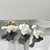 左から 背中の金が美しいステゴサウルス 丸い身体がかわいいトリケラトプス 小顔がかわいいプレシオサウルス 眺めていると癒されます╹◡╹) 色: 本体:白 ハンドペイント部分:金色 素材: 硬質レジン(3Dプリンター) サイズ(左から) 〇ステゴ 高さ:約31mm 幅:約22mm 奥行:約49mm 〇トリケラ 高さ:約32mm 幅:約26mm 奥行:約40mm 〇プレシオ 高さ:約34mm 幅:約28mm 奥行:約33mm 画面により、実際の色とは異なって見える場合がございます。 研磨、塗装など手仕上げのため、色合い、仕上がりひとつひとつに多少の差異 がございます。 3Dプリンター制作過程にできるわずかな凹凸がございます。 また、気泡が見える場合がございます。何卒ご了承くださいませ。 レジン製のため直射日光の当たる場所での保管はお避け下さいませ。 「生活の中に潤いを。 そんな思いを込めてデザインした小さなフィギュアが 少しでも癒しの時間となれば幸いです。」