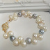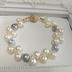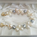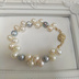ご覧頂きましてありがとうございます。 こちらは、日本産(宇和島産)あこや本真珠(クレオパトラ珠真珠)のブレスレットでございます。 ご自身へのご褒美に プレゼントに マグネットクラスプ で付け外しが、簡単 ブレスレットは、全長、約18センチ マグネットクラスプ も含めた長さ #内径は、約15センチ 多少の誤差はご容赦下さい。 あこや本真珠 日本産(宇和島産) あこや本真珠(クレオパトラ珠) ホワイト系 越物 約8ミリ珠 色、大きさ、かたちに個体差がございます。 バロック型 先端(頭)が尖った、突起(羽)のある珠 しっかりと尖った、羽根の生えたあこや本真珠は、越物でしか見ることができません。 ナチュラルグレーのあこや本真珠 バロック型 当年 越物 約8ミリ珠 個体差がございます。お色目や形、照り、巻き、大きさなど 写真では、濃いく映る場合がございます。お色目の薄いめ、濃いめがございます。 染色、トリートメント加工は、されておりません。浜揚げされたままの自然の中でできたお色で、珍しく、希少でございます。 あこや本真珠の成長跡がございます。 カスレ、ムラ、凹凸、元々のキズなど(写真では、見えにくいです。) 本真珠の証でもあります。 お気になさる方は、お控えください。 照り、巻き 普通〜良い 強い照りや巻きではございません。あこや本真珠の輝きは、上品で素敵でございます。 一つ一つに個体差がございます。色、形など均一ではございません。 一つとして、同じ珠はございません。 ご使用のディスプレイやカメラの関係上などにより、お色目が違って見える場合がございます。 #画像と若干異なる場合がございます。 商品一点一点、個体差がございます。 ナイロンコートステンレスワイヤー加工で、丁寧に作成させて頂きました。 金具と真珠の間に小さなシリコン製クッションをお入れさせて頂いております。 マグネットクラスプ (洗練されたお洒落なデザイン) カラー/ ゴールドカラー 素材/真鍮製 しっかりと付けられます。 付け外しが簡単 マグネットクラスプ の大きさは、約1.6センチ(マグネットクラスプ のカン部分も含みます)多少の誤差はご容赦下さい。 その他の金具の素材/真鍮製 #恐れ入りますが、ご購入前に在庫のご確認を宜しくお願い致します。 丁寧に作成させて頂きました。 神経質な方、評価に厳しい方はご遠慮下さい。 簡易な包装(ラッピング)にて配送させて頂きます。