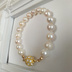 ご覧頂きましてありがとうございます。 こちらは、日本産(宇和島産)あこや本真珠のブレスレットでございます。 ご自身へのご褒美に プレゼントに 女性らしく、清楚で上品な雰囲気に マグネットクラスプ で付け外しが、簡単 ブレスレットは、全長、約18センチ マグネットクラスプ も含めた長さ 内径は、約15センチ 多少の誤差はご容赦下さい。 あこや本真珠 日本産(宇和島産) あこや本真珠、約7.5ミリ珠~約7.6ミリ珠のあこや本真珠を使用 色、大きさ、形に個体差がございます。 ホワイトカラーに、ややクリーム色や、ピンク色が入った珠を含みます。 バロック型 先端が尖った珠や突起のある珠を含みます。まん丸ではなく、歪な形 あこや本真珠の成長跡がございます。 カスレ、ムラ、凹凸、突起、元々のキズなど(写真では、見えにくいです。) 本真珠の証でもあります。 お気になさる方は、お控えください。 照り、巻き 優しい〜普通 強い照りや巻きではございません。あこや本真珠の輝きは、上品で素敵でございます。 一つ一つに個体差がございます。色、形など均一ではございません。 一つとして、同じ珠はございません。 ご使用のディスプレイなどにより、お色目が違って見える場合がございます。 ナイロンコートステンレスワイヤー加工で、丁寧に作成させて頂きました。 真珠と金具の間と真珠と真珠の間に小さな半透明のシリコン製クッションをお入れさせて頂いております。 マグネットクラスプ (洗練されたお洒落なデザイン) カラー/ ゴールドカラー 素材/真鍮製 しっかりと付けられます。 付け外しが簡単 マグネットクラスプ の大きさは、約16ミリ(マグネットクラスプ のカン部分も含みます)多少の誤差はご容赦下さい。 恐れ入りますが、サイズ変更は、お受け致し兼ねます。ご購入前に内径サイズをご確認下さいませ。 その他の金具の素材/真鍮製 #恐れ入りますが、ご購入前に在庫のご確認を宜しくお願い致します。 丁寧に作成させて頂きました。 神経質な方、評価に厳しい方はご遠慮下さい。 簡易な包装(ラッピング)にて配送させて頂きます。
