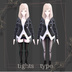 Unityバージョン Unity 2022.3(2022.3.22f1で制作) blenderバージョン blender4.0 ポリゴン数 △ 49101 マテリアル 4個 lilToon Shader https://lilxyzw.booth.pm/items/3087170 シェイプキー VRC用リップシンク·アイトラッキングシェープキー 16個 表情シェイプキー99個 素体シェイプキー9個 衣装シェイプキー2個 メッシュ数 14個 フルトラッキングには対応しておりません。