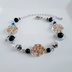 アンティーク風アクリルビーズとサークルフープのブレスレット(シルバー×ブラック)