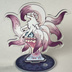 「九尾の狐パフェ アクスタ」 ------------------------------------------------------- 九尾の狐がのったパフェの大きめアクスタ 一応ぶどうパフェ 話に関連する何かが隠れてます 台は殺生石の中世界?とか記憶なイメージ ちょっと線が細過ぎましたが真ん中に眠る九尾がいたりします (本体を刺す時にだけわかるようにしてみました) 輪郭線をぷっくりグロス盛り アクリルの種類は 本体が「ゆめいろ(きいろ)」 台は「ゆめいろ(あお)」 背景が白でないとわからないくらい うっすら色がついてるアクリルで ぱっと見透明、断面が黄や青に見える素材です 本体サイズ:120サイズ(縦116×横115mm) 台:80×62mm 印刷:両面フルカラー 素材:アクリル -------------------------------------------------------
