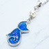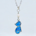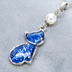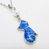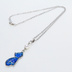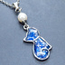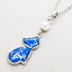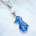 シルバーカラー マリンブルーの猫シルエットペンダントネックレス スワロフスキーパール 長さ変更可