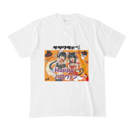 Tシャツ - XL - 白《商品説明》 商品名 Happyハロウィーン 制作者 マリン(千葉中央) 《つくり手さんから》 狼の女の子と猫の女の子のイラストにこだわりました。 この商品はpixivFACTORYで作られた商品です。サンプル画像は完成イメージのため、実物と異なる場合があります。