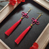 ご覧頂きありがとうございます(^_^) アジアンコード(1mm)で作った几帳結びとタッセルを組み合わせたピアスです。結びとタッセルの間に取り付けたキラキラとしたゴールドの透かしビーズがアクセントとなっております。 着物、浴衣、袴、和ゴス、和ロリ、チャイナドレス等の衣装にあわせていかがでしょうか?(^_^) 飾り部分 約10.5cm(結び約3~3.5cm四方) 金具の変更は ★金属イヤリング(ネジバネ式) ★樹脂イヤリング ★樹脂フック ★ポストピアス ★ステンレスフック に無料変更可能です。ご希望の方はメッセージ下さいませm(_ _)m ※こちらは結び部分の後ろ側を乾くと透明になる接着剤で固めてあります。またハンドメイド作品になりますので、ひとつひとつ差異があります。市販のもののような完璧さや耐久性をお求めの方はご購入をお控えください。 飾り結び 中国結び メドゥプ アジアンノット タッセル チャイナ 中華風 和風 和ゴス 和ロリ 和 着物 袴 浴衣 和風アクセサリー 和風ピアス チャイナアクセサリー チャイナピアス