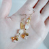 シャープな長方形デザインがとてもお洒落なアクリルフレームストーンに人工水晶にクラック加工が施された淡いイエロー色のクラッククリスタル、そのクラッククリスタルの色合いに合う2サイズ小さめのガラスビーズとチェコビーズを3色ちょこんと合わせた揺れ感あるお洒落なピアス/イヤリングとなっております☺ メインのお色は上品なブラウンと淡いベージュ色、ゴールド金具と合わせて肌馴染みの良い落ち着いた色合いでまとめました☺ とても軽い作りとなっておりますのでさりげなく耳元を綺麗に魅せてくれると思います。 大人っぽい色合いがお好きな方やシャープなデザインの作品が好きな方に特におすすめの作品となっております☆ アレルギー対応のピアスやイヤリングへの変更についてはご注文時にオプションよりご希望金具をお選び下さい☆ ☆クラッククリスタル(人工水晶) 薄いイエロー ラウンド型 6mm玉 ☆ガラスビーズ フルコートゴールド ボタンカット 4mm ☆ガラスビーズ ラスター ペールピンク ラウンド型 4mm玉 ☆ファイアポリッシュチェコビーズ トパーズ 4mm ☆アクリルフレームストーン ゴールド×クリア 長方形 ☆メタルビーズ ゴールド ☆9ピン ☆Tピン ☆丸カン ☆ピアス用金具(フック式☆ゴールド) 長さは約5.5cmとなっております。(1cm程のピアス金具を含む)