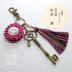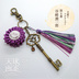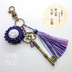 ご覧いただきありがとうございます。 文豪とアルケミストのキャラクターをイメージしたバッグチャームです。 ※こちらは二次創作の作品となります。 先生方に与えられた自室の鍵をイメージして、大きな鍵のチャームに印章に寄せた色のロゼットと、衣装などの色を取り入れたタッセルを添えました。 サイズ:全長約160mm(鍵チャーム部分85mm) 主な素材:サテンリボン、コットン、手まり糸、スワロフスキー/貴和クリスタル、金属(アンティーク加工)、ほか