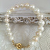 ご覧頂きましてありがとうございます。 こちらは、日本産(宇和島産)あこや本真珠のブレスレットでございます。 ご自身へのご褒美に プレゼントに 記念日に ニューホックタイプの留め具で、 しっかり付けられます。 内径は、約17センチ 全長、約19.3センチ 外した状態で、金具部分の長さも含めます。 多少の誤差はご容赦下さい。 #恐れ入りますが、サイズの変更は、お受け致しかねます。内径サイズをご確認下さいませ。 あこや本真珠 日本産(宇和島産) あこや本真珠、約8ミリ珠のあこや本真珠を使用 多少の誤差はご容赦下さい。 色、大きさ、形に個体差がございます。 ホワイトカラーに、ややクリーム色やピンク色が入った珠を含みます。 ラウンド系(ニアラウンド)、セミバロック型を含む場合がございます。 あこや本真珠の成長跡がございます。 カスレ、ムラ、凹凸、突起、元々のキズなど 本真珠の証でもあります。写真では、見えにくく、分かりにくいです。 本真珠の魅力でもあります。 お気になさる方は、お控えください。 照り、巻き 優しい 強い照りや巻きではございません。あこや本真珠の輝きは、上品で素敵でございます。 一つ一つに個体差がございます。お色目など均一ではございません。 一つとして、同じ珠はございません。 ご使用のディスプレイなどにより、お色目が違って見える場合がございます。 #画像と若干お色目などが異なる場合がございます。 あしからずご了承下さいませ。 ナイロンコートステンレスワイヤー加工で、丁寧に作成させて頂きました。 金具と真珠の間、2ヶ所に小さなシリコン製クッションをお入れさせて頂いております。 留め具/ニューホック カラー/ ゴールドカラー 素材/サージカルステンレス316 しっかりと付けられます。 金具の素材/丸カン/真鍮製 ボールチップ/真鍮製 日本製 #恐れ入りますが、ご購入前に在庫のご確認を宜しくお願い申し上げます。 丁寧に作成させて頂きました。 神経質な方、評価に厳しい方はご遠慮下さい。 簡易な包装にてネコポスにて、配送させて頂きます。