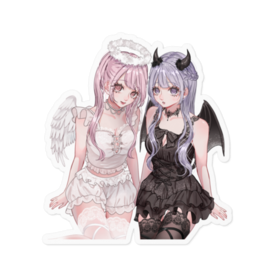ステッカー - 100 x 100 (mm)甘鈴音ころんと紫桃楓璃のステッカーです 耐水仕様なのでどこに貼っても長持ちします 約10cm ホワイト仕様