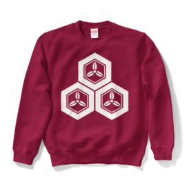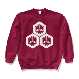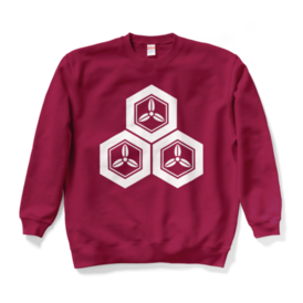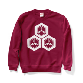 直江兼続 家紋 三つ盛亀甲に三つ葉 スウェット ワインレッドに白