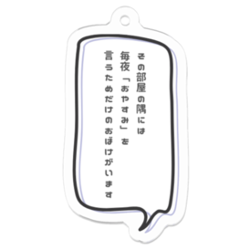 アクリルキーホルダー - 50 x 50 (mm)その部屋の隅には毎夜「おやすみ」を言うためだけのおばけがいます/海野水屑 短歌を印字した小さなアクリルキーホルダーです。 吹き出し内の背景は透明ではなく白色になっています。 あなたがよく眠れますように。 ※この商品はpixivFACTORYで作られた商品です。サンプル画像は完成イメージのため、実物と異なる場合があります。