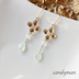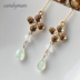 【送料込み】お花と天然石ライトグリーンカルセドニーの雫ピアス