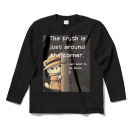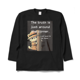 ロングスリーブTシャツ - XL - ブラック電柱の影でひっそり尾行中。でも本音は「もう帰りたい…」。優しいデザインとユーモアたっぷりのTシャツで、ほっこり気分をお届けします。 この商品はpixivFACTORYで作られた商品です。サンプル画像は完成イメージのため、実物と異なる場合があります。