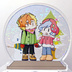 SoftPBのダイカットアクリルブロック。厚みがあるのでスタンドなしで自立します。 約8cm×8cm、厚み8mm、表面片面印刷、ホログラムアクリル
