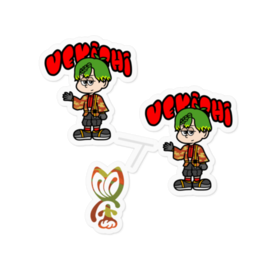 【商品詳細】 立ち絵イラスト&ロゴステッカー 材質:塩ビ 台紙サイズ:100 x 100 (mm) 中央部分をハサミで切り分けてご使用ください
