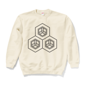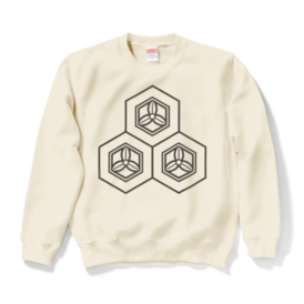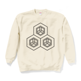 直江兼続 家紋 三つ盛亀甲に三つ葉 スウェット オフホワイトに黒白