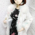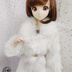 モデル:Smartdoll(LS胸) セット内容 ・フェイクファーコート(単品) (ドール本体、アクセサリー、靴及び撮影用小物は付属しません) Smartdollサイズのレディース用アウトフィットです。 ラグジュアリーな長毛ファーのひとつボタンコートです。 一見白一色のコートですが、カラフルなニット地がベースになっているので、色がファーにほんのり透けて見え、優しいレインボーカラーが浮かんできます。 衿元はアシンメトリーにデザイン。金ボタンも透かしモチーフで、ボリューミーになりすぎないよう軽やかさをプラスしました。 S、M胸だとすっきりと着用できます。また、表地、裏地共に伸縮性のある素材なので、L胸やDDdyでも良い感じにぱつぱつ感が出せます。 色移りの心配は低いかと思いますが、着せっぱなしにする際は念の為時々ご確認いただくことをお薦めいたします。 Smardollのレディースサイズが基準です。(女子はLS胸まで確認済み。) その他DDdyベースボディノーマル胸は着用確認済みです。