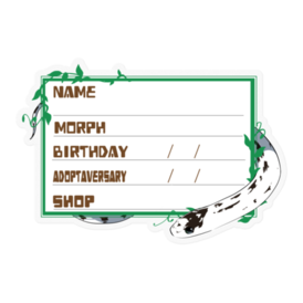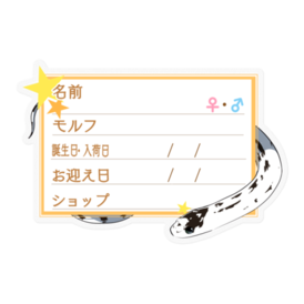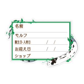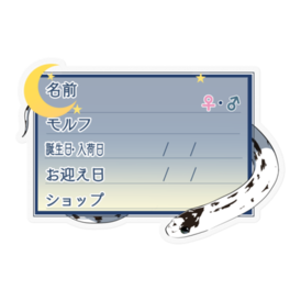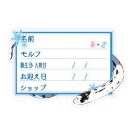 【🐍お名前ステッカー】カリキン(ハイホワイト) ‐夜(英語)防水仕様のお名前ステッカーです🐍 マジックでご記入後、ケージなどに貼ってお使い下さい✨ ★文字を入れた状態での納品をご希望の場合、ご希望の商品名と、下記項目をわかる範囲でメッセージにてお伝えください🍀 ・お名前 ・性別 ・モルフ名 ・誕生日or入荷日 ・お迎え日 ・購入したショップ名 お名前ステッカー一覧 → https://blue-tetra.booth.pm/item_lists/mLdTYVqm DLデータ版 → https://blue-tetra.booth.pm/item_lists/myVTMMPV ≪フレームラインナップ≫ 1.ツタ 2.ツタ(英語) 3.お菓子 4.お菓子(英語) 5.ハート/ピンク 6.ハート/ピンク(英語) 7.ひまわり 8.ひまわり(英語) 9.もみじ 10.もみじ(英語) 11.リボン/ピンク 12.リボン/ピンク(英語) 13.星 14.星(英語) 15.ハート/ブルー 16.ハート/ブルー(英語) 17.リボン/ブルー 18.リボン/ブルー(英語) 19.雪 20.雪(英語) 21.夜 22.夜(英語) サイズは幅8.5cm前後です。 その他サイズ指定やホワイト(透明でないもの)、項目の変更、モルフの追加等ご希望ございましたら、メッセージ等でお気軽にご相談下さい(*'ω'*) この商品はpixivFACTORYで作られた商品です。サンプル画像は完成イメージのため、実物と異なる場合があります。