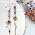 [ 大倶利伽羅 ] image pierce|earring 微睡みの竜 赤と紫が柔らかく混ざり合うヴィンテージパーツに本丸でゆったり過ごす非番の伽羅ちゃんを見ました。 上着は脱いで、腕から覗く倶利伽羅竜とカーンのネックレス。縁側でうたた寝の竜王。 [ガーネット・ヴィンテージビーズ] ピアス▶ フック式ピアス(サージカルステンレス) イヤリング▶ ねじバネ式イヤリング(真鍮・メッキ※ゴムカバー付き) size: 9.0㎝(金具は含みません) 《 Info 》 ▲ ハンドメイドかつデリケートな作品のため、強い力を加えたり、ひっぱったりすると破損の恐れがありますこと、ご了承下さい。 ▲ 天然素材・ヴィンテージパーツには個体差がございます。特に天然石はヒビや内包物が含まれる場合もございます。お迎えの際はそれを風合いとしてお楽しみいただけますと幸いです。 ▲ ピアスはサージカルステンレスのため金属アレルギー対応となっておりますが、上記素材でもアレルギーの反応が出る方もいらっしゃいます。ご心配のある方は恐れ入りますがお迎えをお控えください。 ※イヤリングは金属アレルギーに対応しておりません。 ▲ 接着の補強としてレジンを使用している作品もございます。アレルギーをお持ちの方はご注意ください。 ▲ ご使用中に生じたトラブルにつきましては当方では一切の責任を負いかねます。 ▲ ご覧の環境によりましては、実物と色味が異なる場合がございます。
