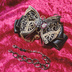 第五人格 夜の番人/日を蝕む者 上記イメージのバッグチャームです。 「囚われの身」と色違いの刺繍リボンを使用。スティルトをイメージしたパーツと、クリムゾンムーンのビジューが不敵に煌めきます。 裏面デザインには「風行 遠距離急襲」のエフェクトをイメージした狼のパーツをあしらっております* チャームの鎖部分、砲金色のチェーンが「日を蝕む者」の圧倒的な存在感を表現しております⟡.· ☾サイズ:縦横最大約12cm前後 ☾1部海外製品のパーツを使用、初期傷や擦れなどある場合がございます ☾手作業のため、パーツやリボンの配置が若干異なる場合がございます。また、接着剤のはみ出しなどある場合がございます。ハンドメイド作品としてご了承の上、お迎えください ⚠️こちらは「日を蝕む者A」「囚われの身A」とは使用している刺繍リボンが異なります。 (そのためBと記載しております) 刺繍リボン以外のパーツ等は変更ありません*