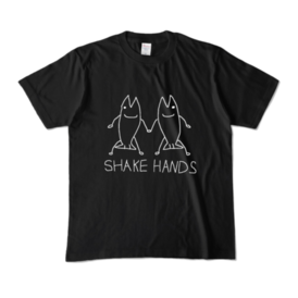 カラーTシャツ - XL - ブラック (濃色)しゃけが握手してるだけです この商品はpixivFACTORYで作られた商品です。サンプル画像は完成イメージのため、実物と異なる場合があります。