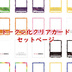 自分のカードをトークン化するクリアカード(枠)です。 WIXOSSで使用するのを想定しています。 外側の白枠、説明文がある枠は非透過、内側の色枠は透過されています。 クリアファイルのような質感になってます。 仕様: 高透明フィルム、厚さ0.3mm サイズ 63×89mm 種類: ・全部セット(アッパー&ゲーム1(赤、青、緑、黒、白、オレンジ、ピンク、スノーホワイト、クリア、シックブラック、レインボー)、ルリグバリア(白、緑)、シグニバリア(白、青)、ゲート(青、白)、サーバント ZERO Ver.2 29種) ・アッパー&ゲーム1セット(青、赤、緑、黒、白、オレンジ) ・新作セット(シックブラック、レインボー、ルリグバリア、シグニバリア) ・準新作セット(ピンク、スノーホワイト、クリア、サーバント ZERO Ver.2) ・アッパー&ゲーム1確定 ランダム3枚セット 【ランダム3枚セットについて】 アッパー&ゲーム1が1枚ずつ、他1枚、合計3枚のセットです。 色はランダム。お試しにどうぞ。 【前回からの変更点】 ・ゲーム1赤: 背景模様が他と異なっていたため統一 ・アッパー&ゲーム1スノーホワイト: 内側枠が薄すぎたので修正 ・サーバント ZERO: デザインの修正 【注意】 ・高透明フィルムは非常にキズが入りやすいため、製造時や輸送時に多少のキズや擦れ跡が入る場合があります。予めご了承の上、ご利用下さい。 ・裁断の都合上、外枠に1mmほどのズレがある場合があります。 他のWIXOSS関連クリアカードはこちら 色別 https://lostake.booth.pm/items/6568531 横向き https://lostake.booth.pm/items/6665100 WIXOSS以外もあるよ 先攻後攻 https://lostake.booth.pm/items/6664770 SP推しスキル https://lostake.booth.pm/items/6664792