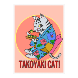 【ステッカー】TAKOYAKI CAT 🔶オリジナルイラストのステッカーが登場! イラスト制作者:ノーリターン新 🔷サイズ 100 x 100 (mm) *************** お問い合わせ/Inquiries ◆HP https://rashikulab.jp/nyankolab/ ◆X https://x.com/nyankolab_hmmt ***************