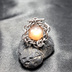 作品シリーズ:asteroid 用途:ペンダント等 素材: sus316L(サージカルステンレス) 天然石:オレンジムーンストーン 天然石色:ブラウンオレンジ色に光効果有 天然石サイズ ±10㎜ (商品により多少の誤差がございます) 用途:ペンダントトップ・お守り等 ●作品の制作に関して 天然石の大きさに合わせ、円形のサージカルステンレス(マルカン)を1つ1つ何十個も手作業で複雑に編み上げていくチェインメイルと呼ばれる技法を使い制作されたアクセサリーです。 ●天然石に関して 艶やかで透明感のある石質にオレンジ色の中にグレー色が少し混じり、光の束が浮かび上がり神秘的な雰囲気を持つブラウンオレンジムーンストーンを使ったペンダントトップ。 オレンジムーンストーは長石グループの鉱物で、ラブラドライト・サンストーン・アマゾナイト等様々な鉱物が属している天然石です。 その昔、ムーンストーンはその神秘的な輝きから月の輝きが結晶化した石だと信じられており、月の魔力の化身として神聖視されていました。 夜道を照らす月明かりの様に真実を授け、危険から身を守ると考えられていたそうで、 古代インドの方々はムーンストーンを「聖なる石」として崇めお守りとして身に着けていたので、お守りとして身に着けるにもピッタリな天然石です。 ストーンワード ・願望の達成 ・幸運やチャンスを引き寄せる ・共感性や協調性を高めて人間関係を円滑に ・優しい心の癒しと明るさをもたらす ・心を柔軟にして変化に対応力を付ける ・心身のバランスを整える ※天然石説明にて使用しております説明等は古来よりの言い伝え等に基づき記載させていただいております。 効果等と保証するものではございません。 ※※天然石は自然から出来たもので、人工物ではないため、こまかなカケや凹み歪な部分やクラック等がある場合がございます。
