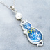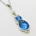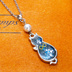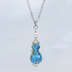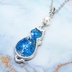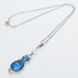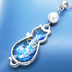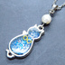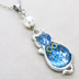 シルバーカラー マリンブルー猫シルエットモチーフとスワロフスキーパールのネックレス 長さ調整可