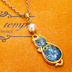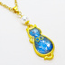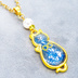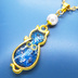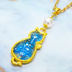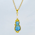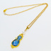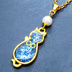 ゴールドカラー マリンブルー猫シルエットモチーフとスワロフスキーパールのネックレス 長さ調整可