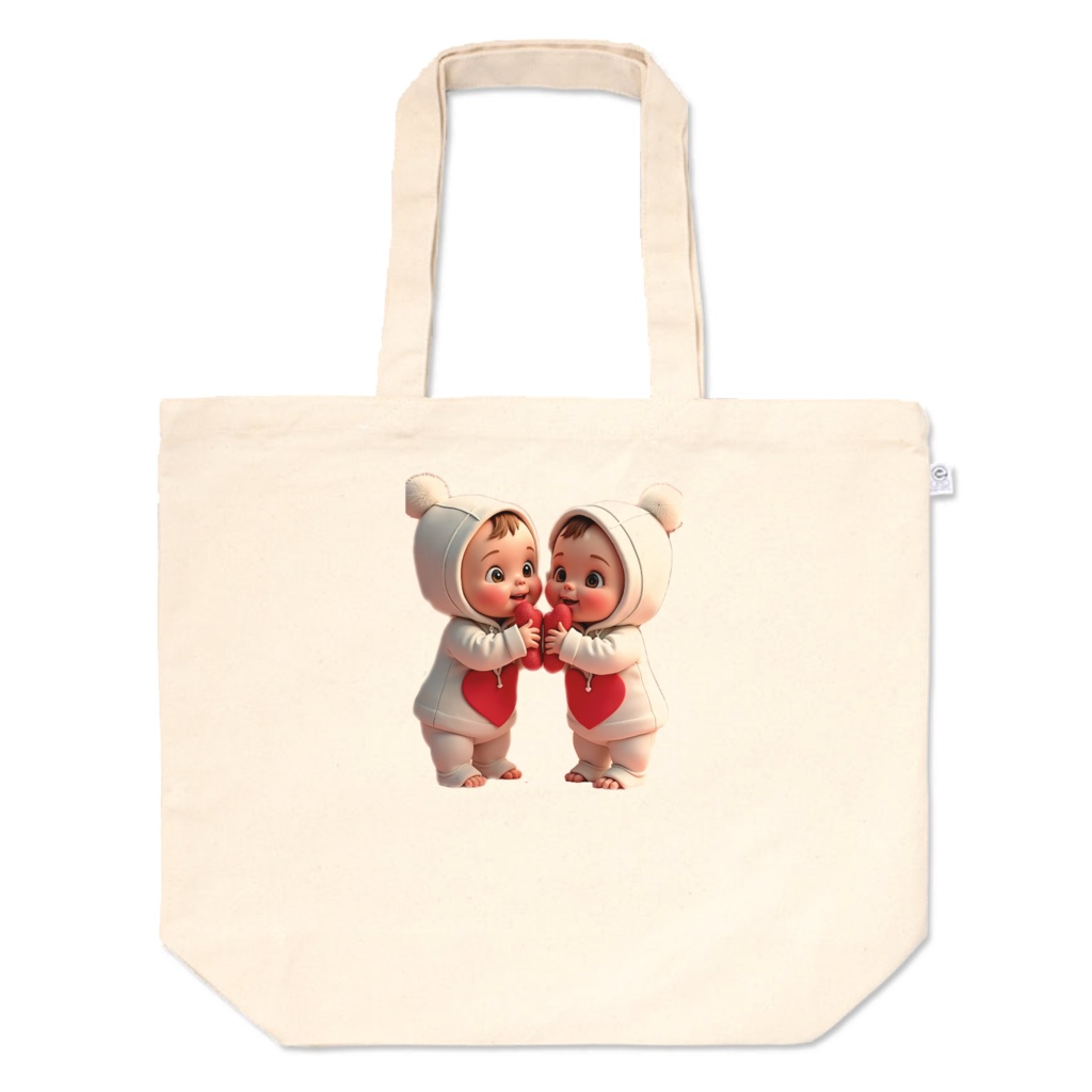 トートバッグ - L - プリント面積中この商品はpixivFACTORYで作られた商品です。サンプル画像は完成イメージのため、実物と異なる場合があります。 🩷ྀི ふわもこ双子ベビーがトートバッグに♡ 🩷ྀི 使うたびに癒されるキュートなデザイン♪ 🩷ྀི 実用性もバッチリ✨ 🩷ྀི プレゼントにもぴったりな特別アイテム♡