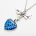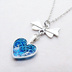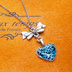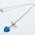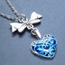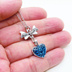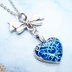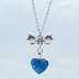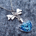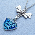 アンティークシルバー アラベスク調の透かし模様のブルーハートとリボンのネックレス 長さ調整可