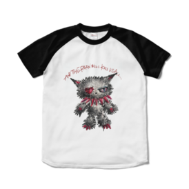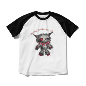 punkにゃむ1号ラグランT - S - ホワイト×ブラック