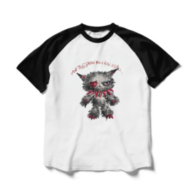 punkにゃむ1号ラグランT- M - ホワイト×ブラック