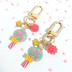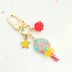 ペロペロキャンディがキーボルダーになりました! 2色が渦巻くペロペロキャンディの持ち手には小さなリボンキャンディをプラス。 両サイドにはお星様のキャンディと金平糖が彩ります。 主にレジンを使用し、ひとつひとつ手作業で丁寧に製作しています。 そのため、形や色、デコレーション等に多少個体差がございます。 世界に一つだけの手作りの風合いとして楽しんでいただけると幸いです。 【目安のサイズ】 ・全体の長さ 7cm 【材質】 レジン、アクリル塗料、ニス他