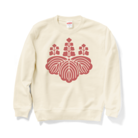 豊臣秀吉 豊臣秀頼 家紋 五七の桐 スウェット オフホワイトに赤