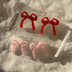 no.104 リボンピアス ribbon あかいろ red リボンアクセサリー レジンピアス ハンドメイドピアス