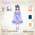 ガーリーコーデらしくフリルやリボンを全体的に配置し、スカートや袖、靴下の部分にはチューリップの花びらのようなシルエットを取り入れています。 さらに各所にチューリップを取り入れることで、テーマを強調しつつ少女らしい可愛らしさをアップさせています。 頭部には女の子らしいアイテムとしてヘッドドレスを採用。 一見すると可憐で少女らしい印象ですが、大人っぽさを引き立てるメタリックな質感を取り入れたチューリップのチャームのアクセントにもご注目ください。
