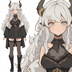 【獣人】黒い大きな角のウェーブ白髪少女_立ち絵