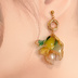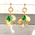 「花束のささやき」ディップアートの花びらピアス(ゴールド×グリーン)