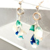 「花束のささやき」ディップアートの花びらピアス(シルバー×グリーン)