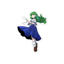 東方projectより東風谷早苗のステッカーです。 この商品はpixivFACTORYで作られた商品です。サンプル画像は完成イメージのため、実物と異なる場合があります。 材質:塩ビ(白フチ)、耐水